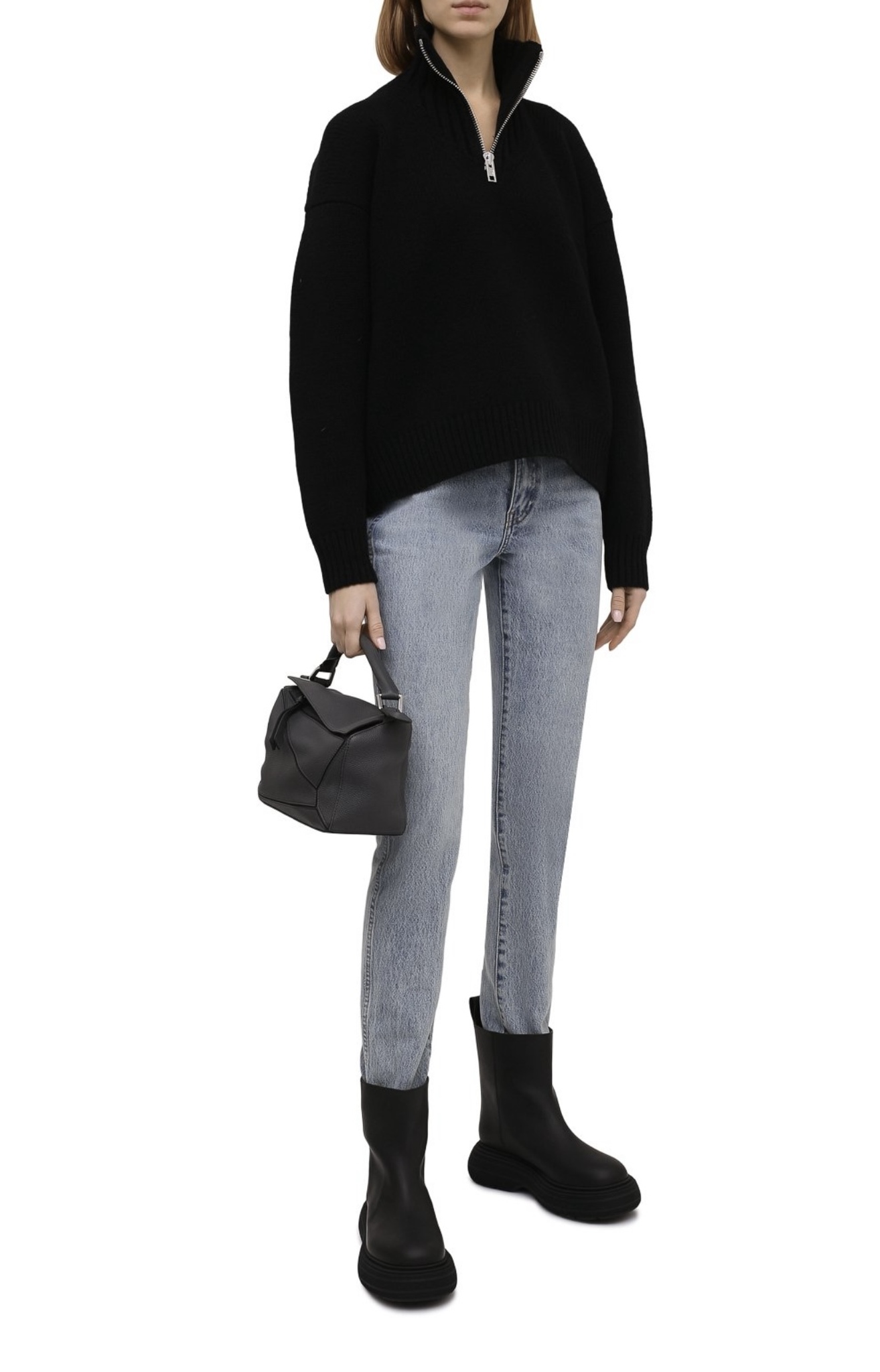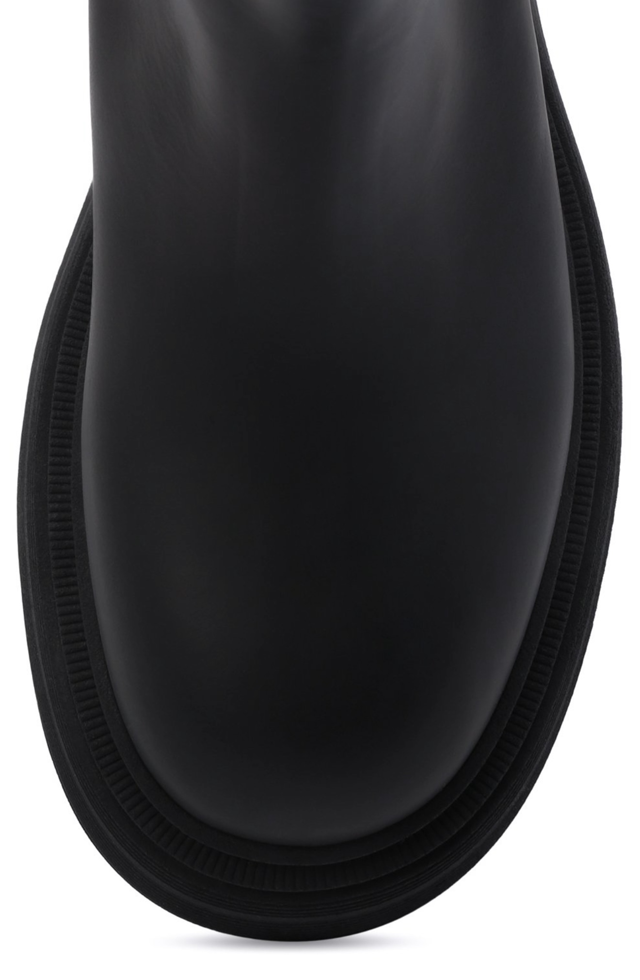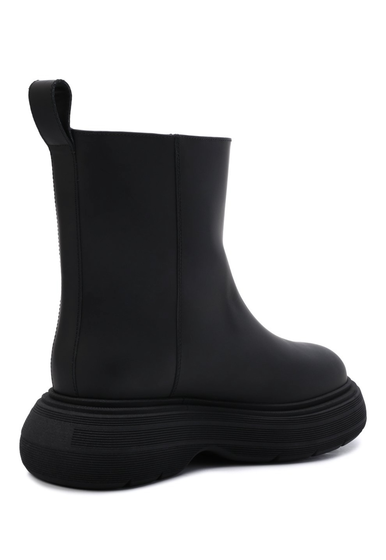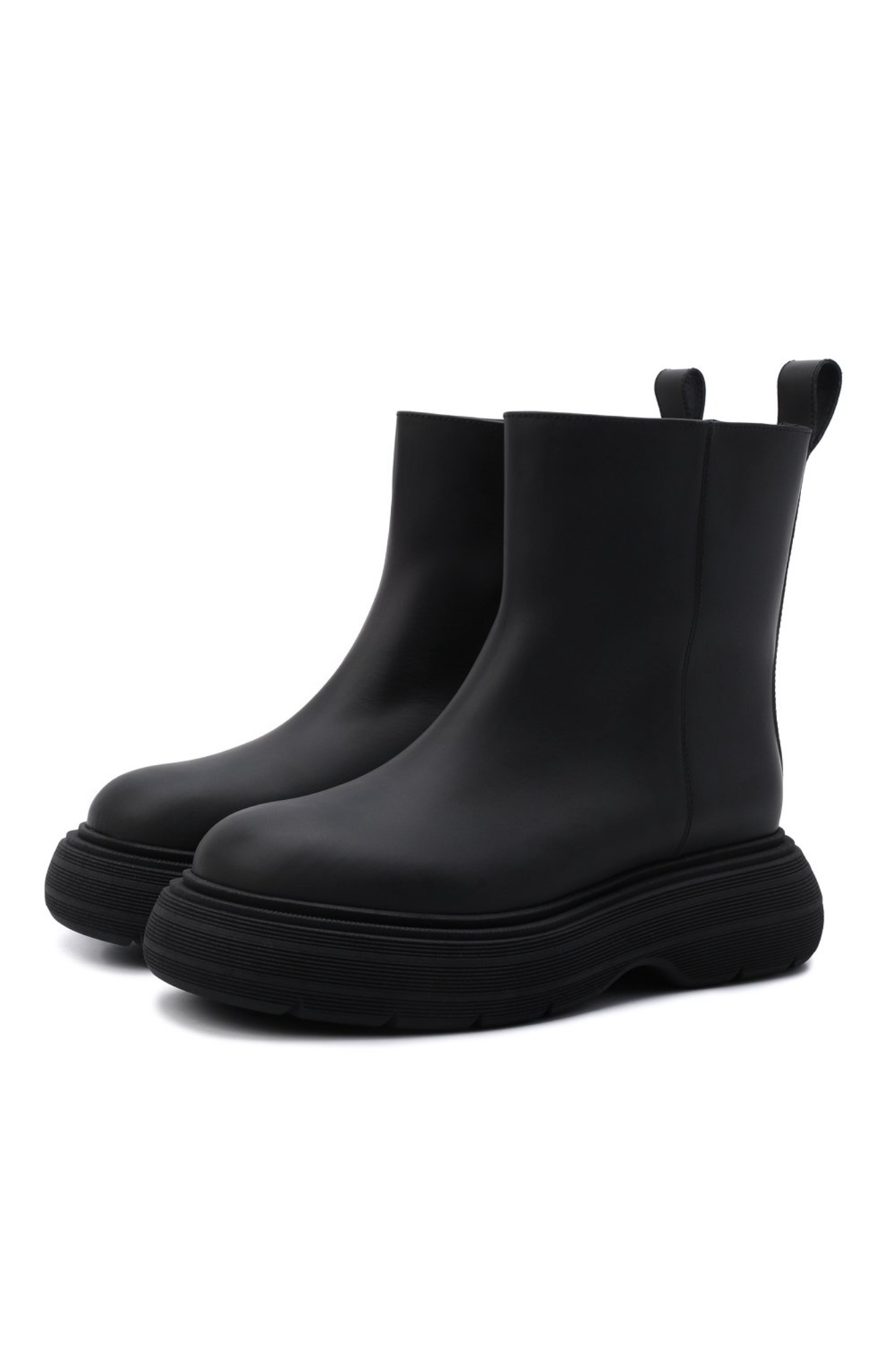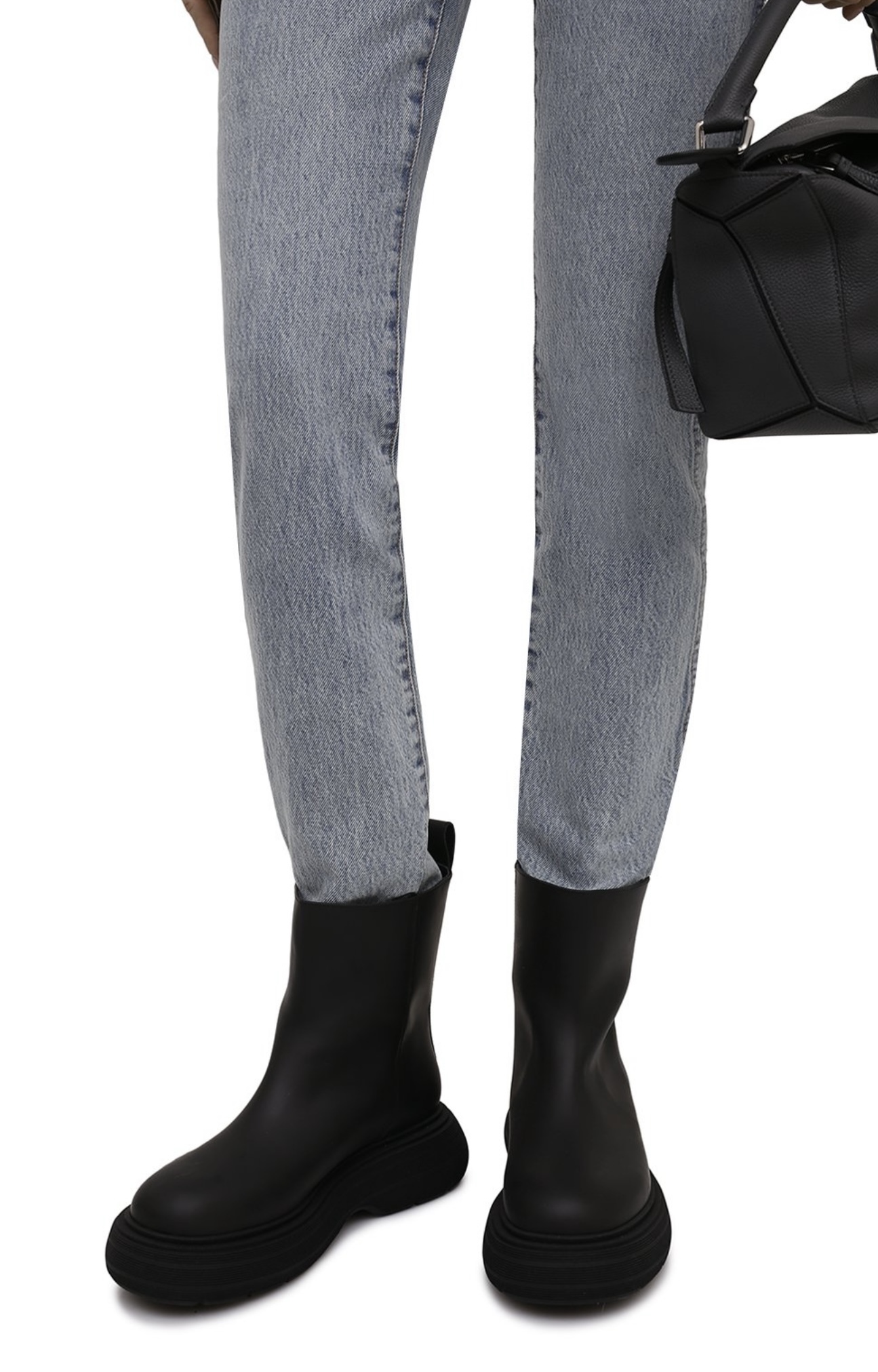 Дизайнер бренда очистила черные полусапоги Marte от декора, отдав главную роль широкой подошве обтекаемой формы. Для изготовления модели из осенне-зимней коллекции мастера марки использовали гладкую матовую кожу. Благодаря широкому голенищу обувь без молнии удобно надевать и снимать.
