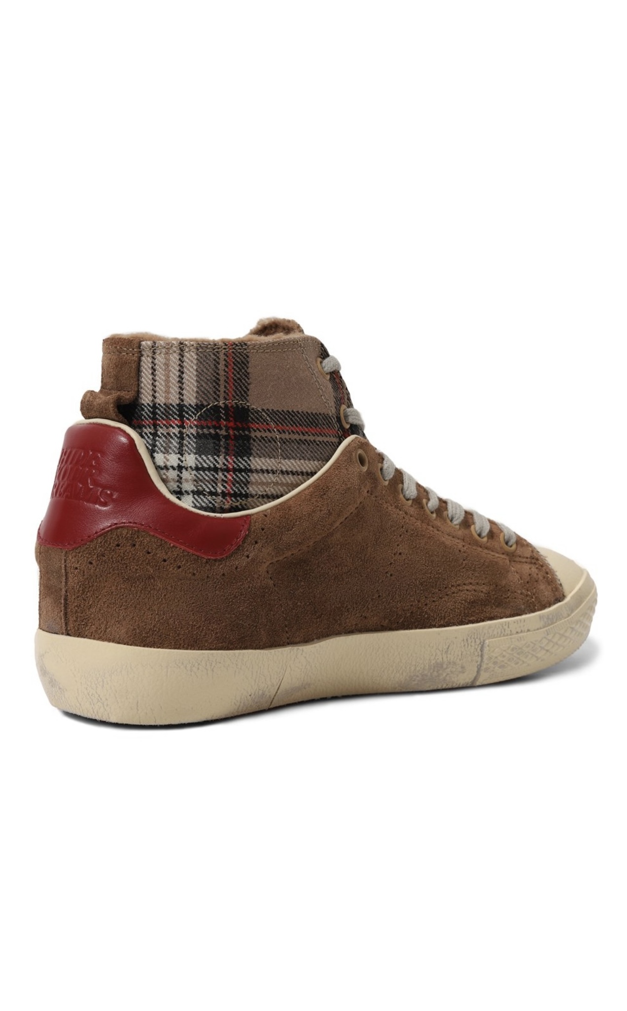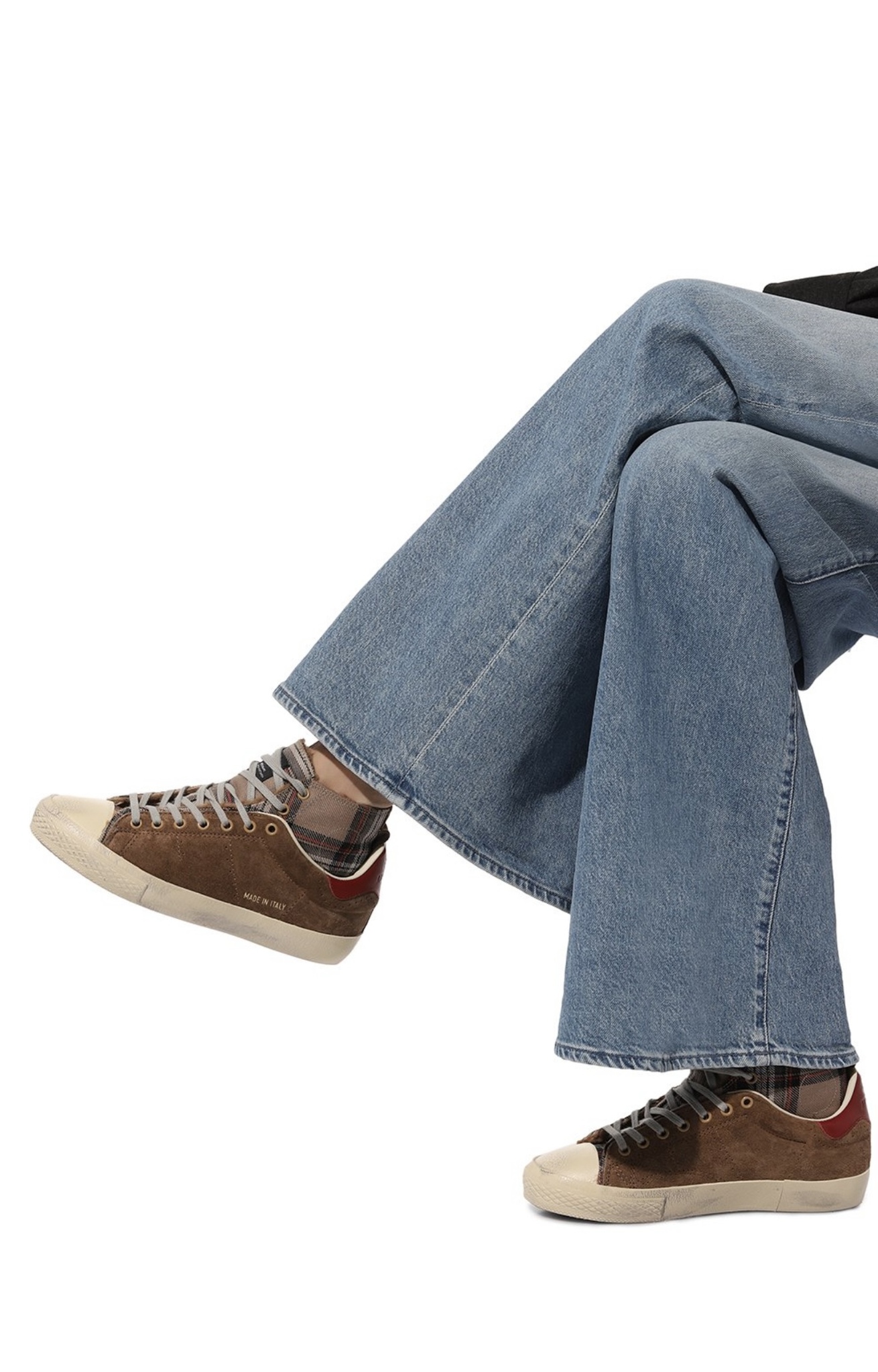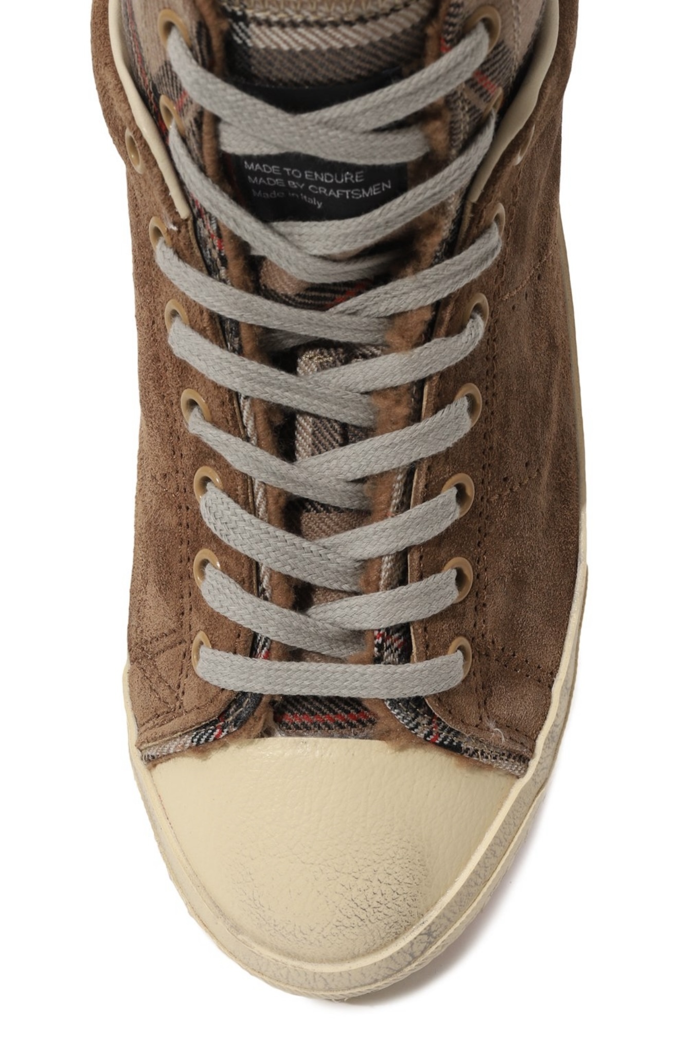 Бежевые кеды Starless, представленные эксклюзивно в ЦУМе, выглядят так, словно их собрали из двух разных пар. Такой эффект создает клетчатая текстильная вставка, которой дополнили модель из бархатистой замши и гладкой кожи. Обувь с мысом, укрепленным резиновой накладкой, утеплили изнутри мягким пушистым флисом, поэтому в ней будет комфортно в прохладную погоду.