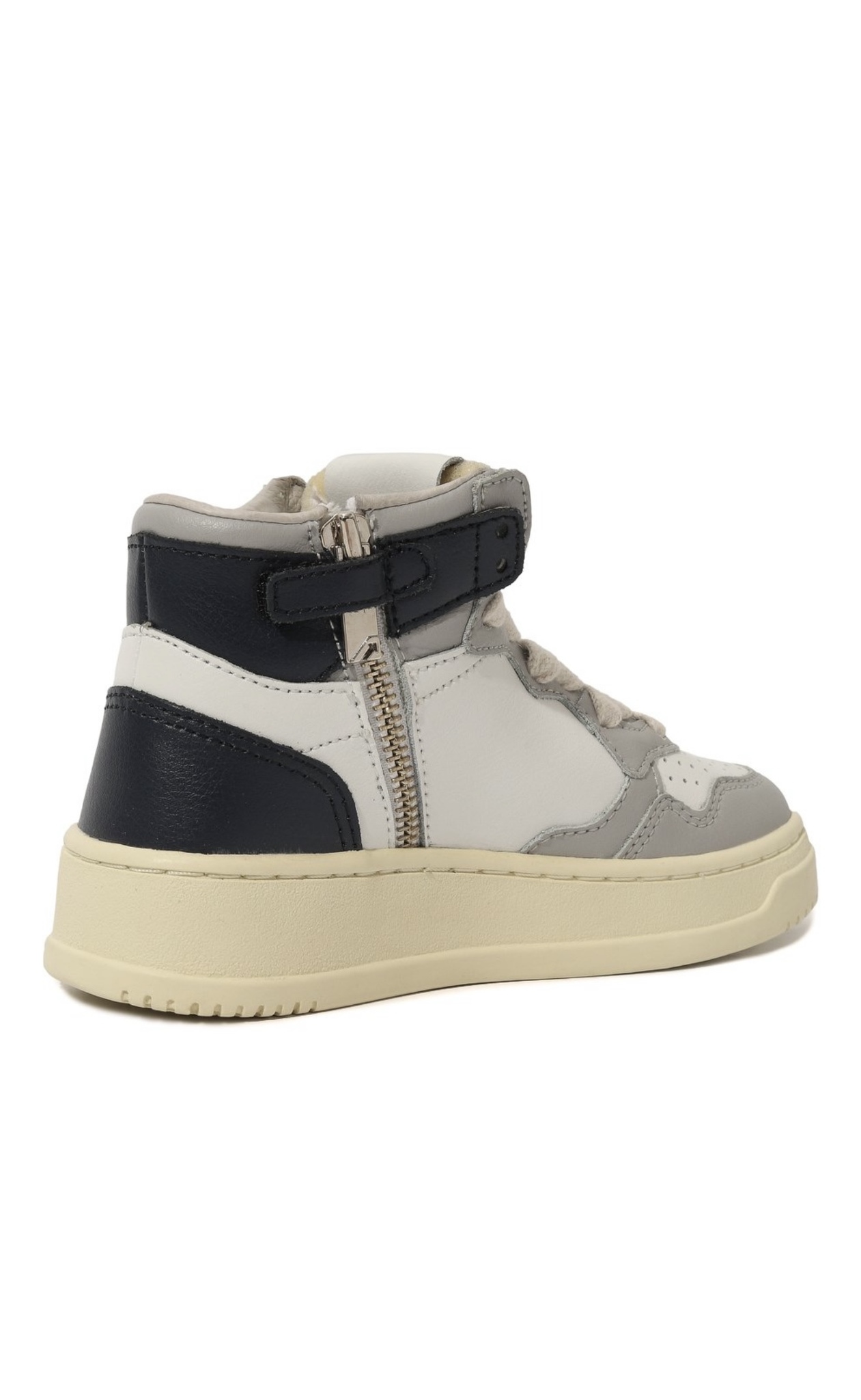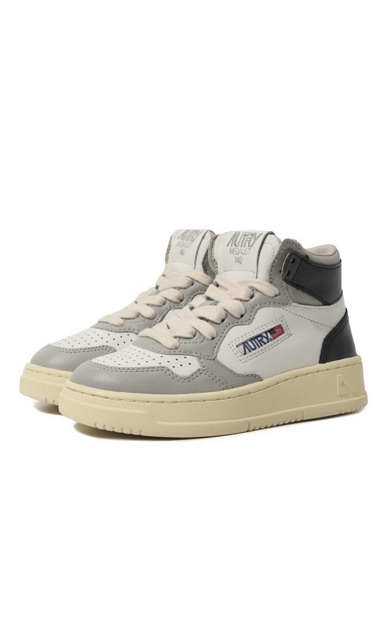 Светло-серые кеды Medalist Mid выполнили из матовой плотной кожи. Союзку украсили перфорацией, которая играет как декоративную, так и функциональную роль, улучшая вентиляцию воздуха. Язычок дополнили нашивкой с логотипом бренда, которому вторит фирменная вставка на берцах. Помимо шнуровки у обуви предусмотрели боковую молнию.