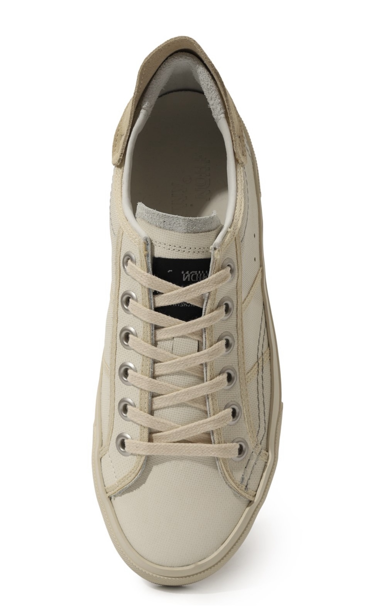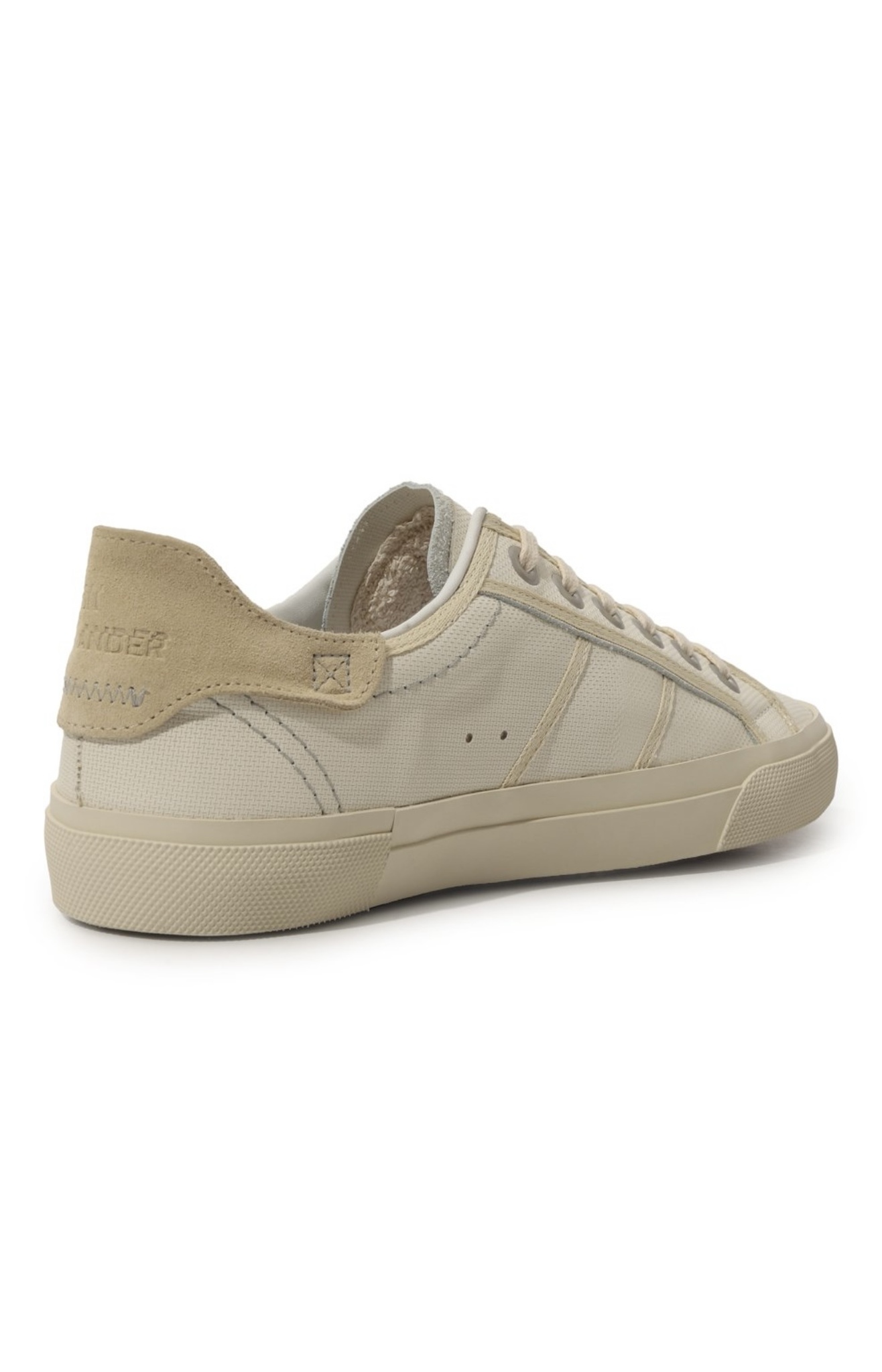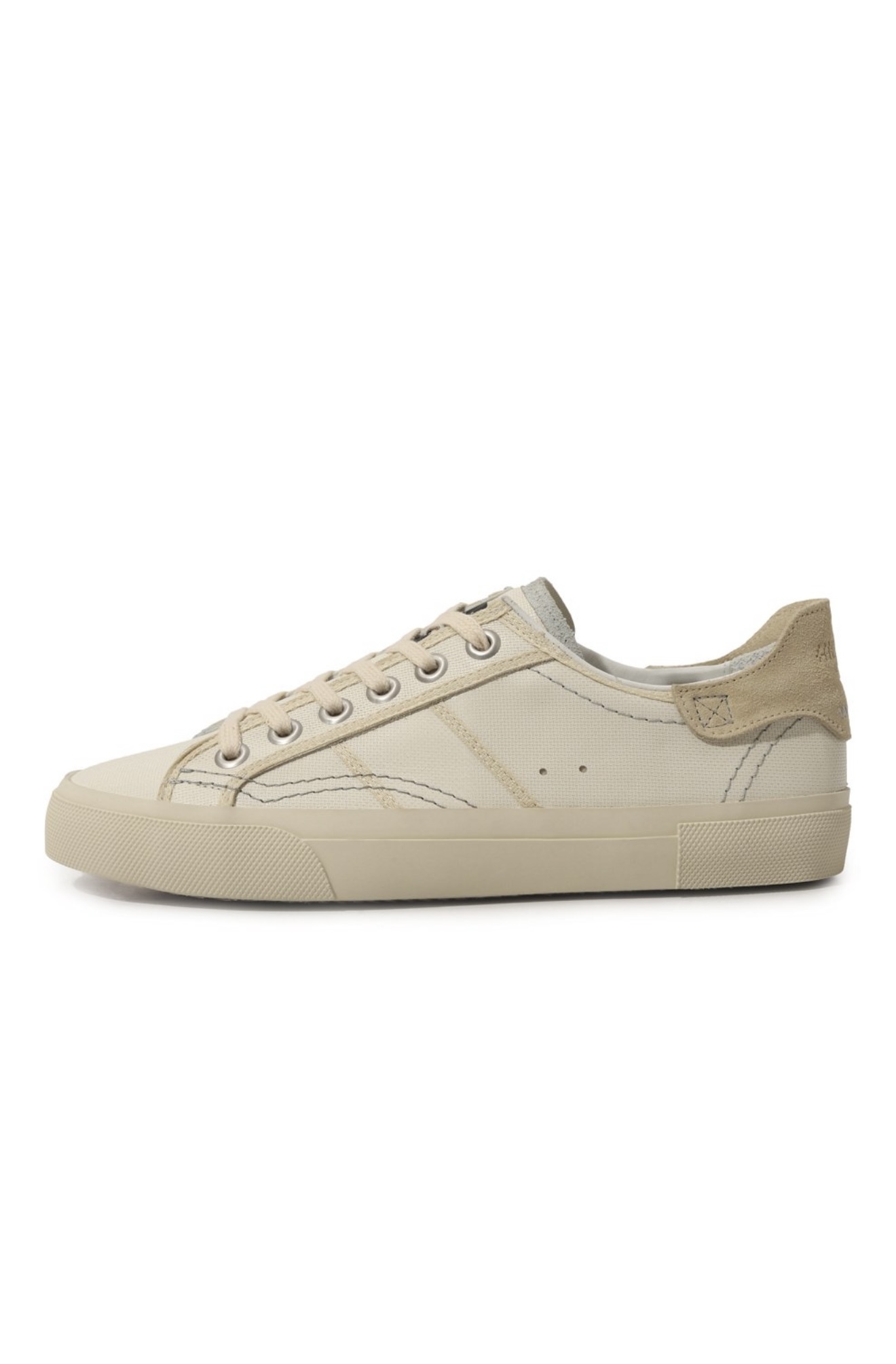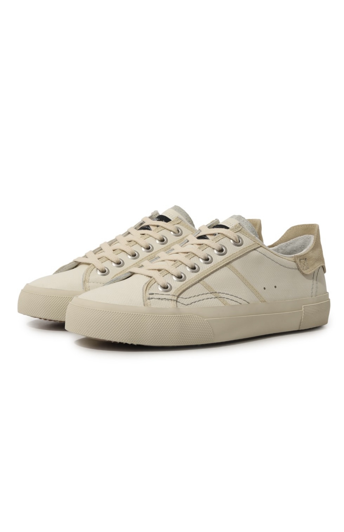 Кеды Mesa нейтрального кремового оттенка идеально завершат неформальный образ в разной цветовой палитре. Модель с фигурными стежками по бокам сшили из мягкой прочной кожи с фактурой, напоминающей текстиль. Задник дополнили замшевой накладкой в тон, украшенной тисненым логотипом.