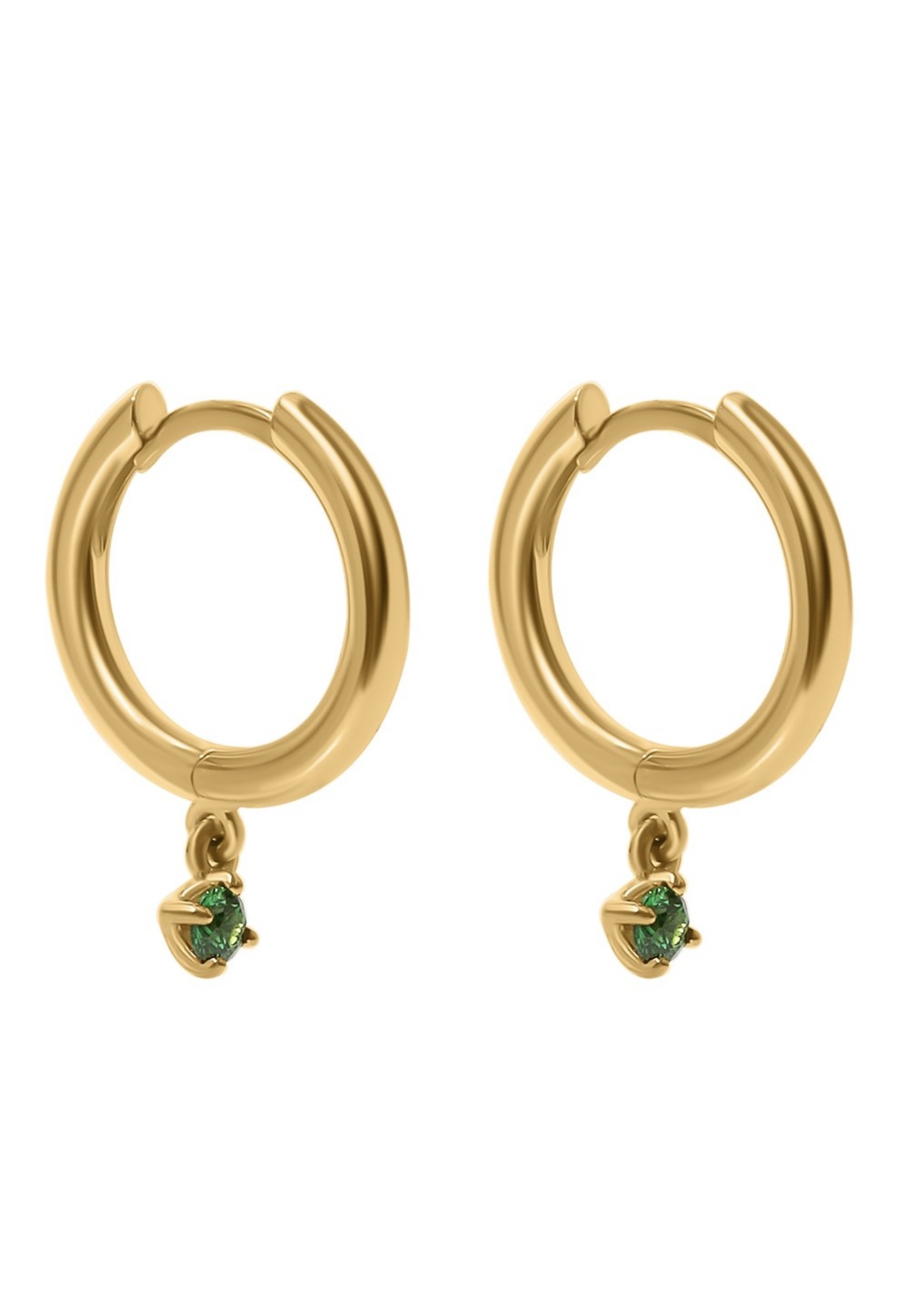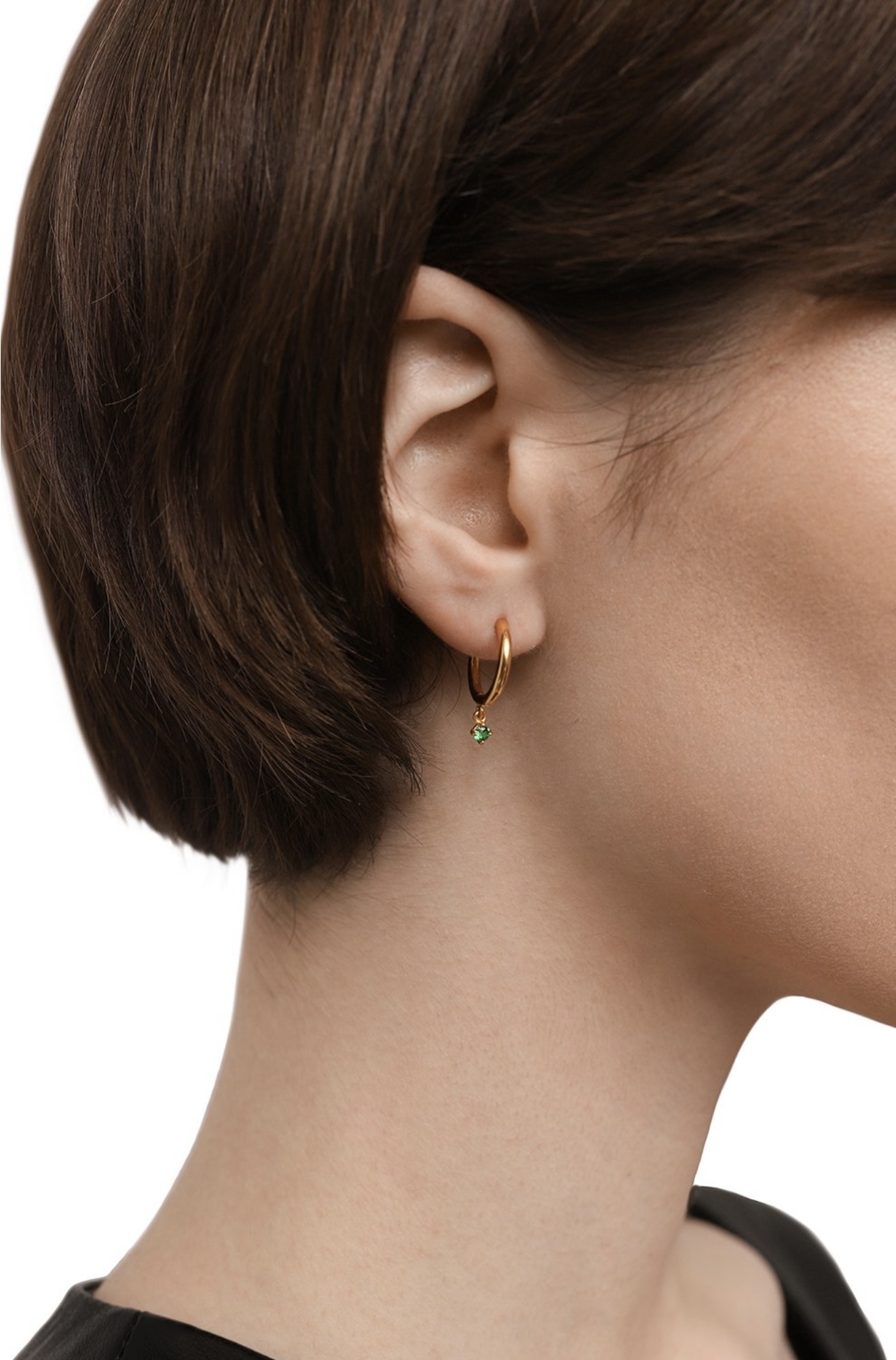 Почти невесомые серьги-кольца, выполненные вручную из гипоаллергенного стерлингового серебра, впишутся в любой образ. Небольшое позолоченное украшение с застежками конго дополнено миниатюрными подвижными подвесками со сверкающими изумрудными цирконитами в крапановой закрепке.