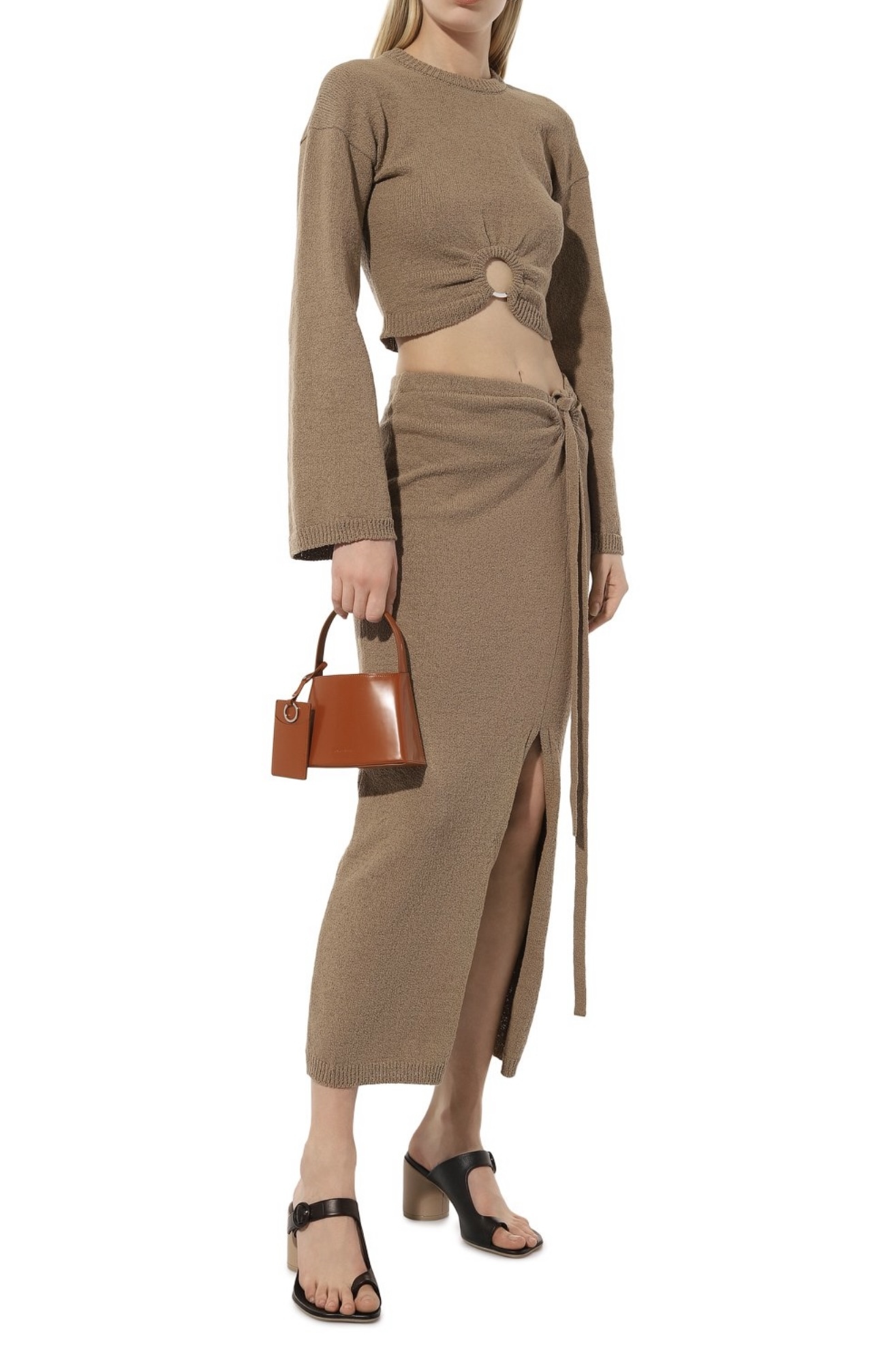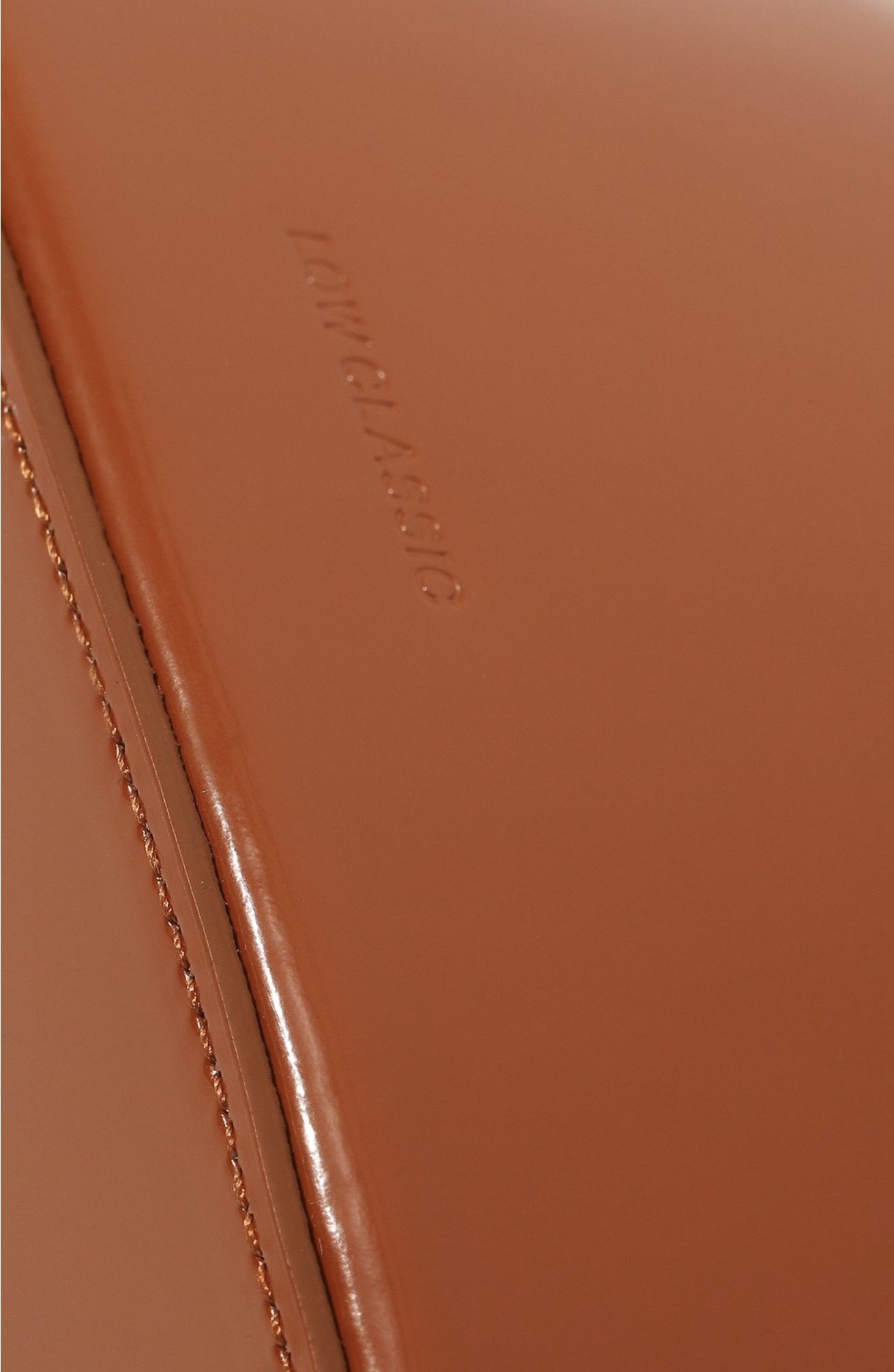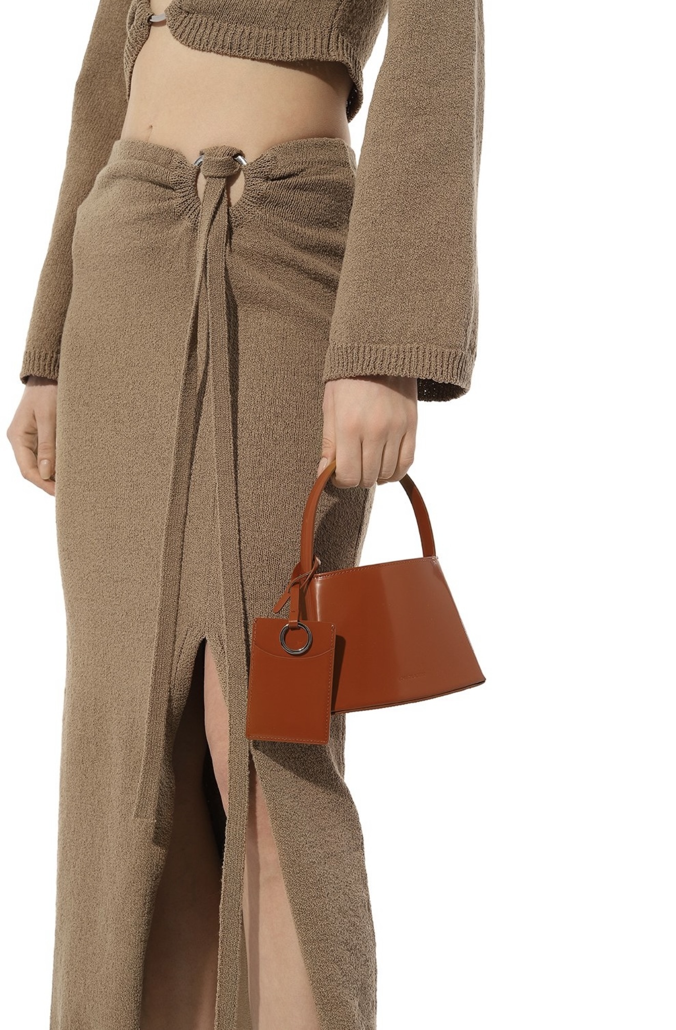 Мини-версии знаковой для бренда сумки Curve не нужен декор, чтобы привлекать внимание. С этой задачей справляется отточенная до совершенства архитектурная форма, которую подчеркивает блеск гладкой коричневой кожи. К короткой изогнутой ручке модели с помощью тонкого шнура, продетого в крупный металлический люверс, крепится картхолдер.Внутрь поместятся ключи, зеркало и помада.