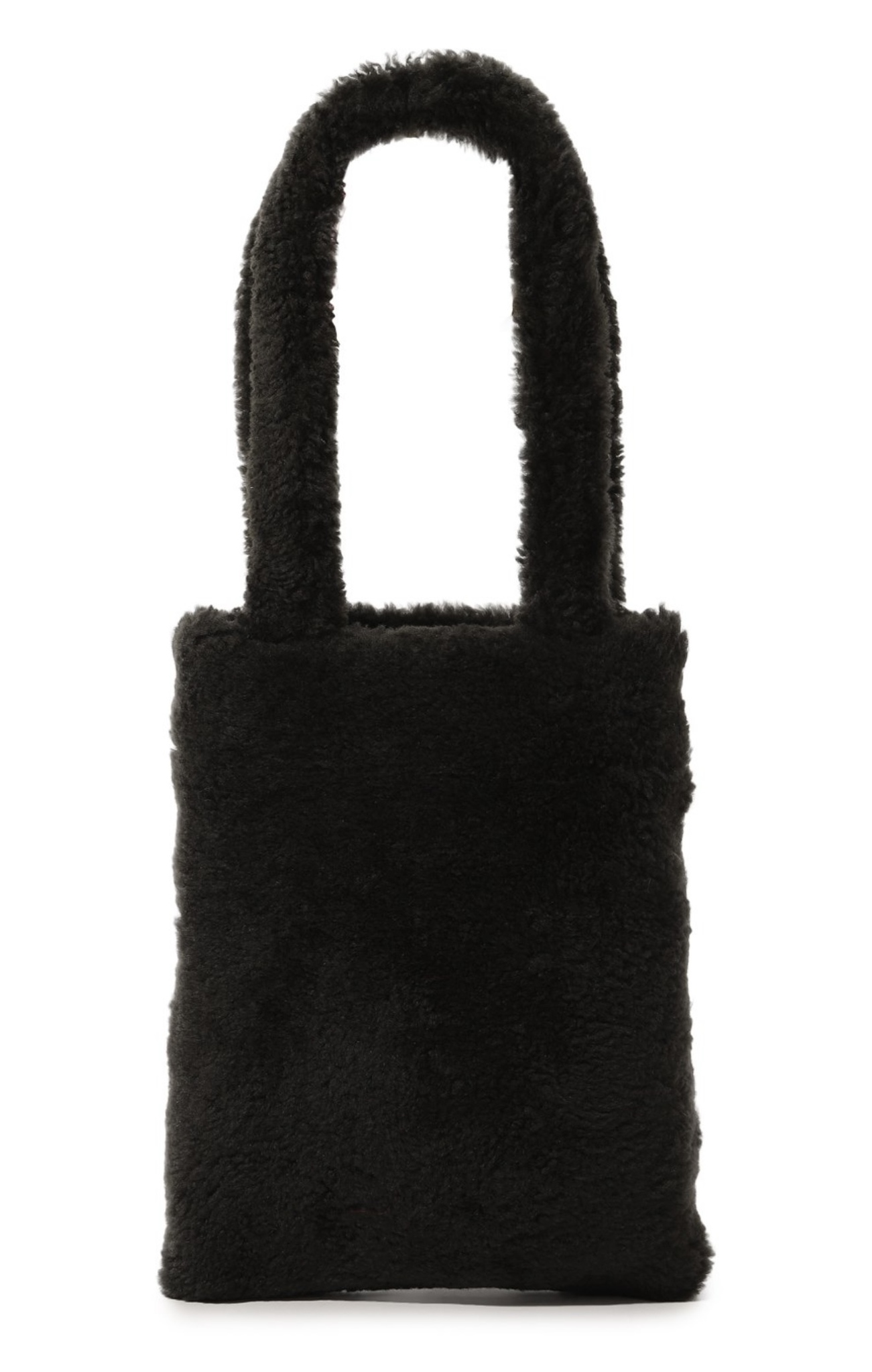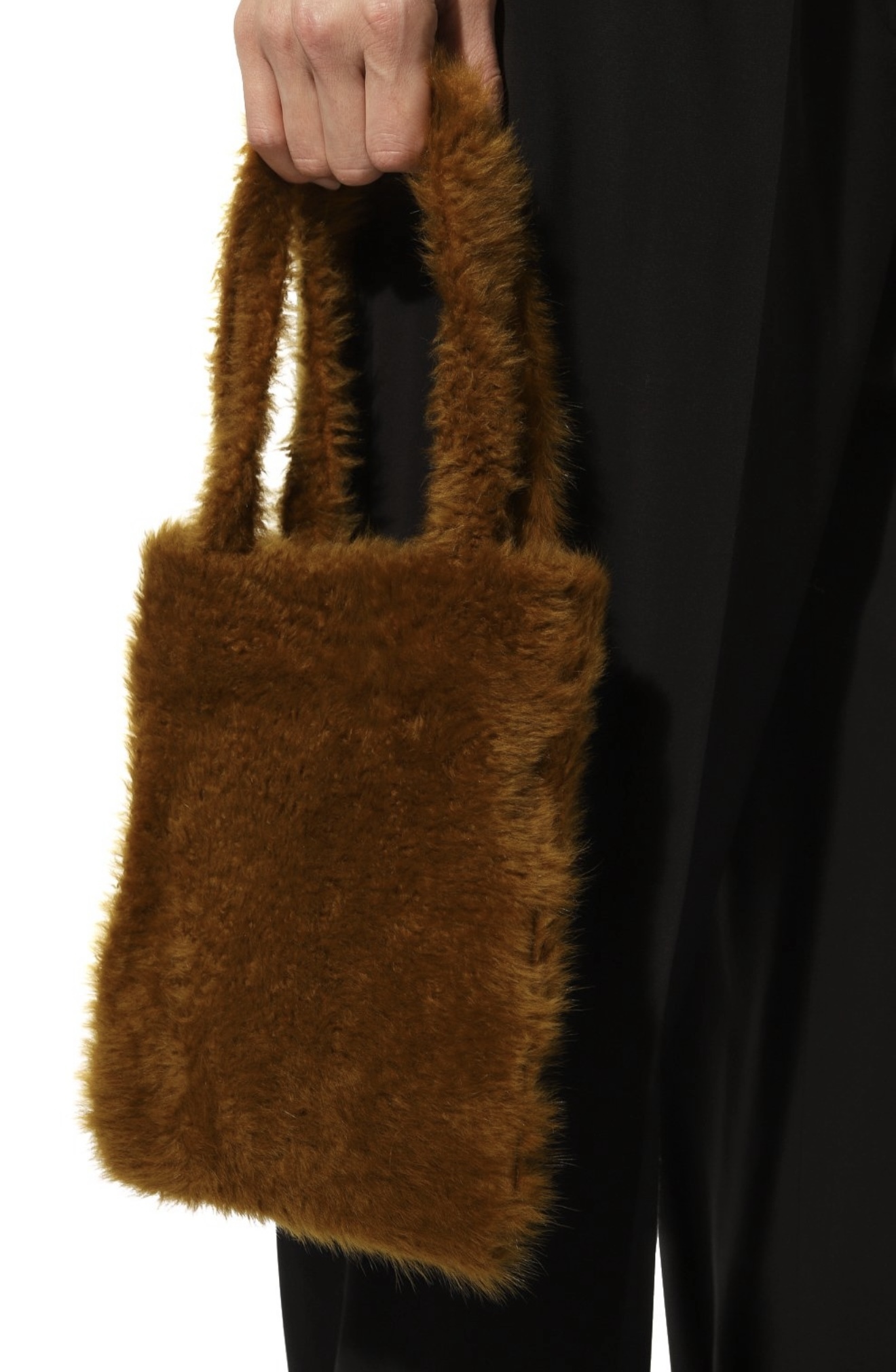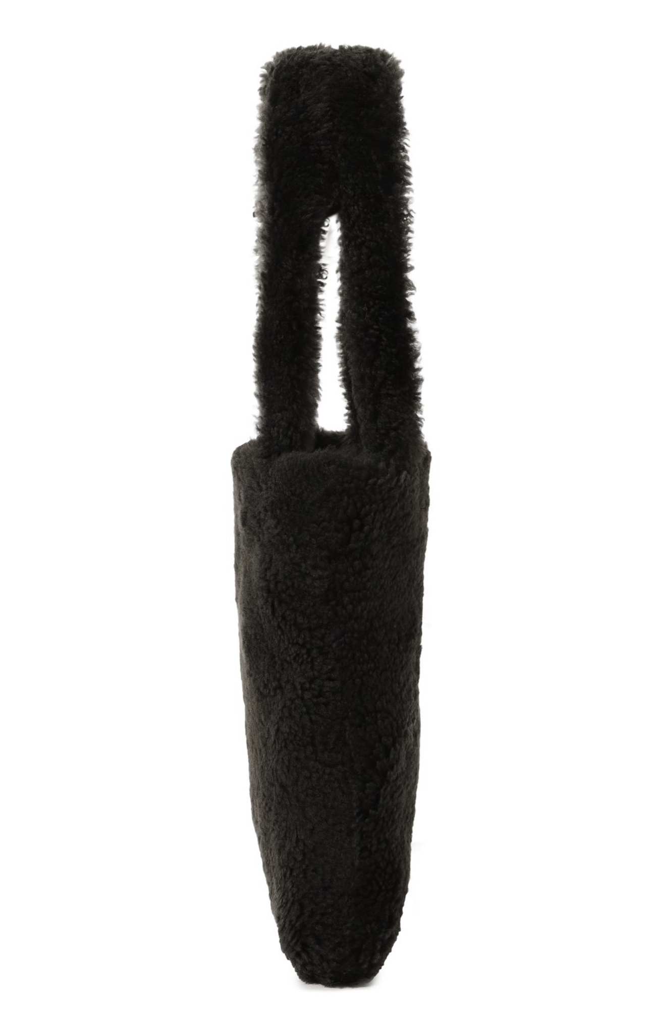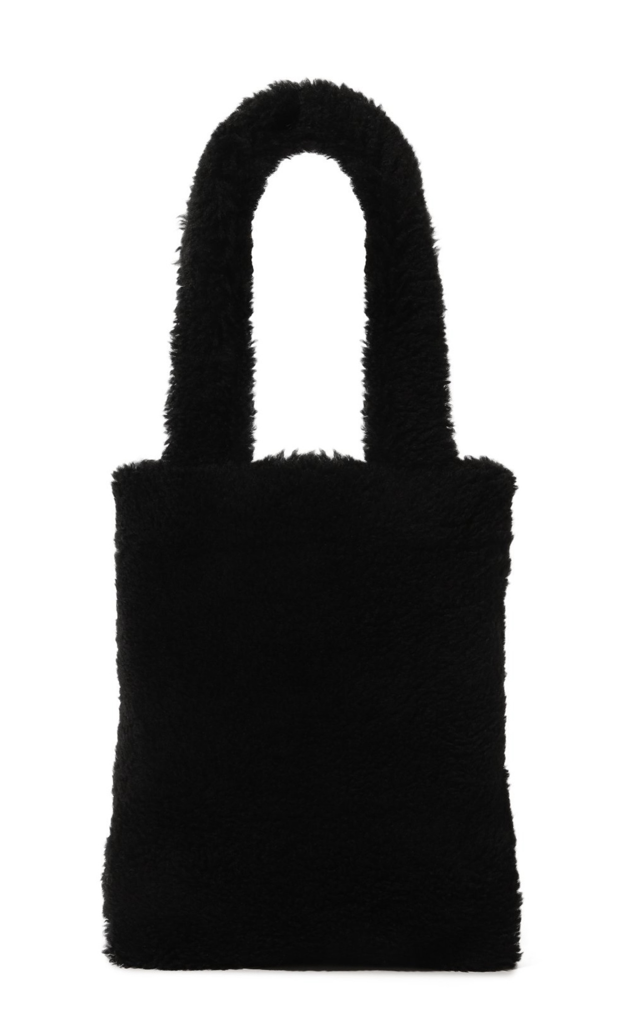 При создании небольшой черной сумки дизайнеры марки отказались от любых цветовых акцентов и сфокусировали внимание на материале. Для изготовления модели с короткими ручками они выбрали густую овчину с длинным ворсом. Внутрь поместятся ежедневник формата А4 и смартфон.