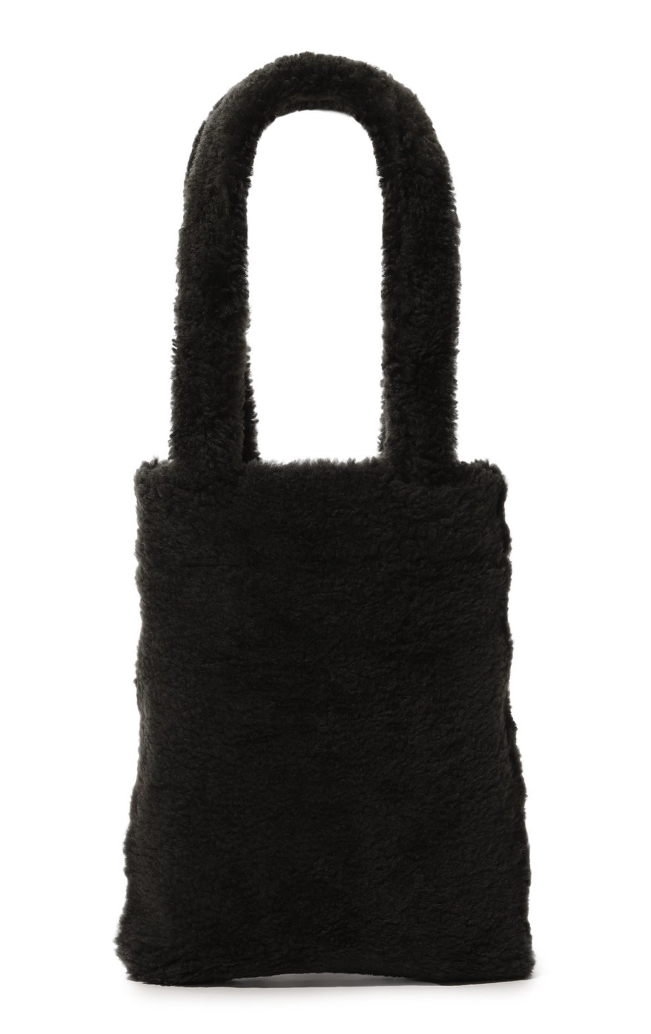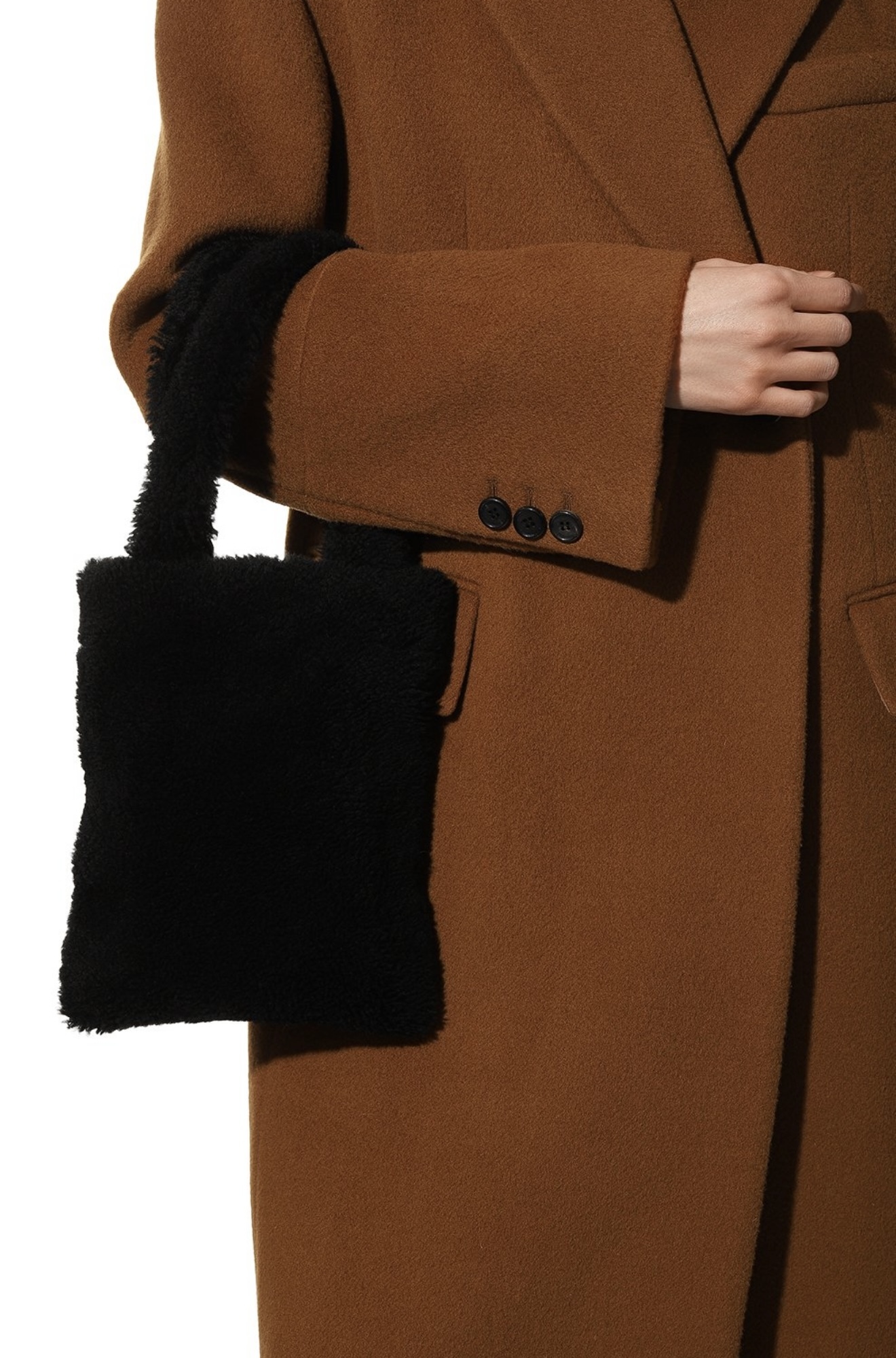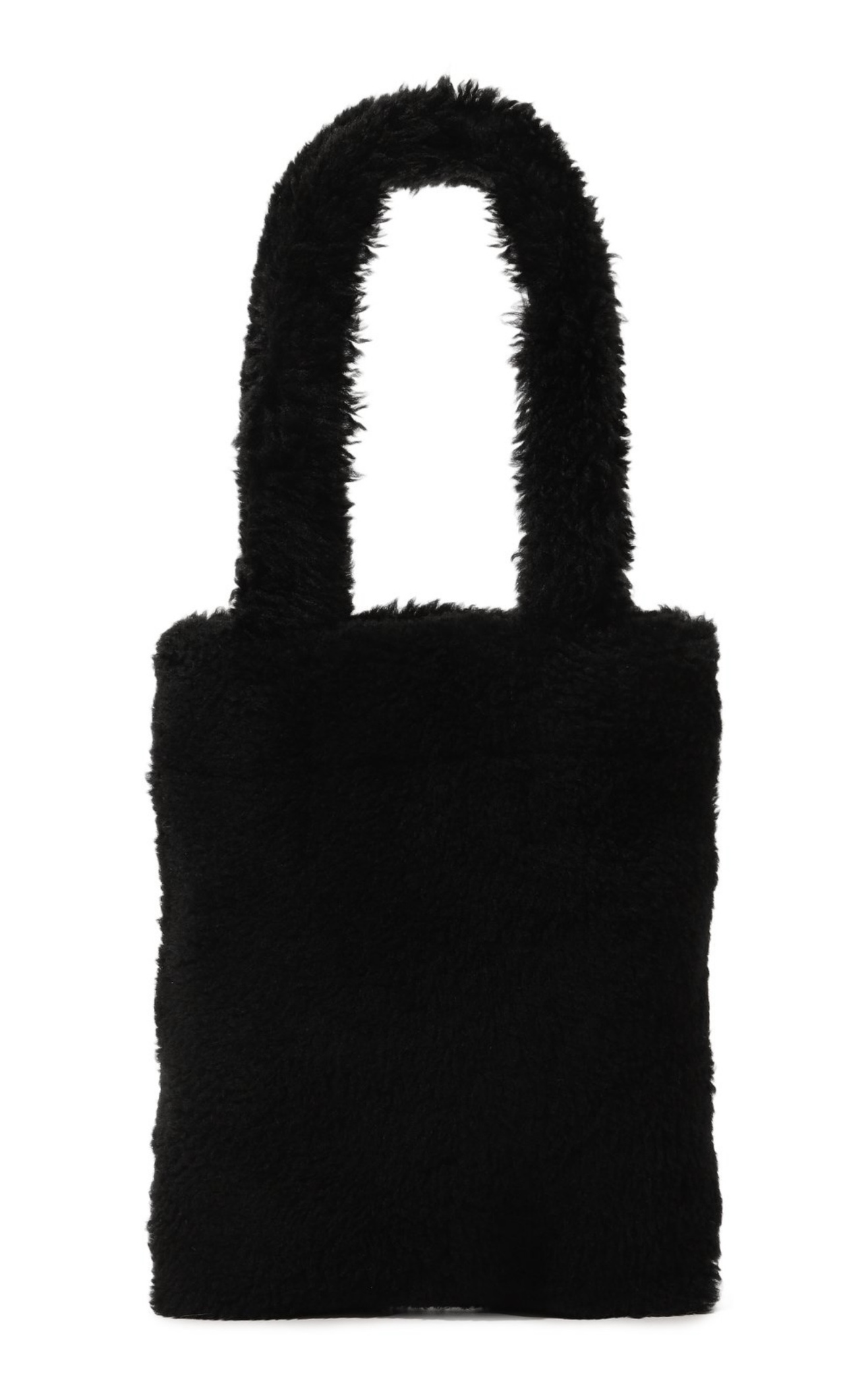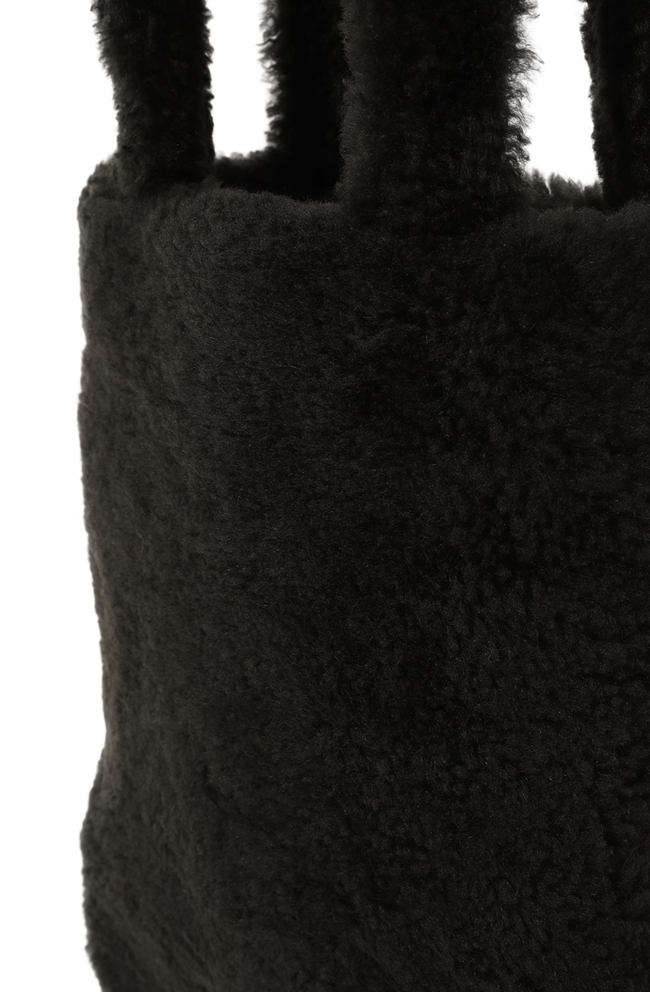 При создании небольшой черной сумки дизайнеры марки отказались от любых цветовых акцентов и сфокусировали внимание на материале. Для изготовления модели с короткими ручками они выбрали густую овчину с длинным ворсом. Внутрь поместятся ежедневник формата А4 и смартфон.