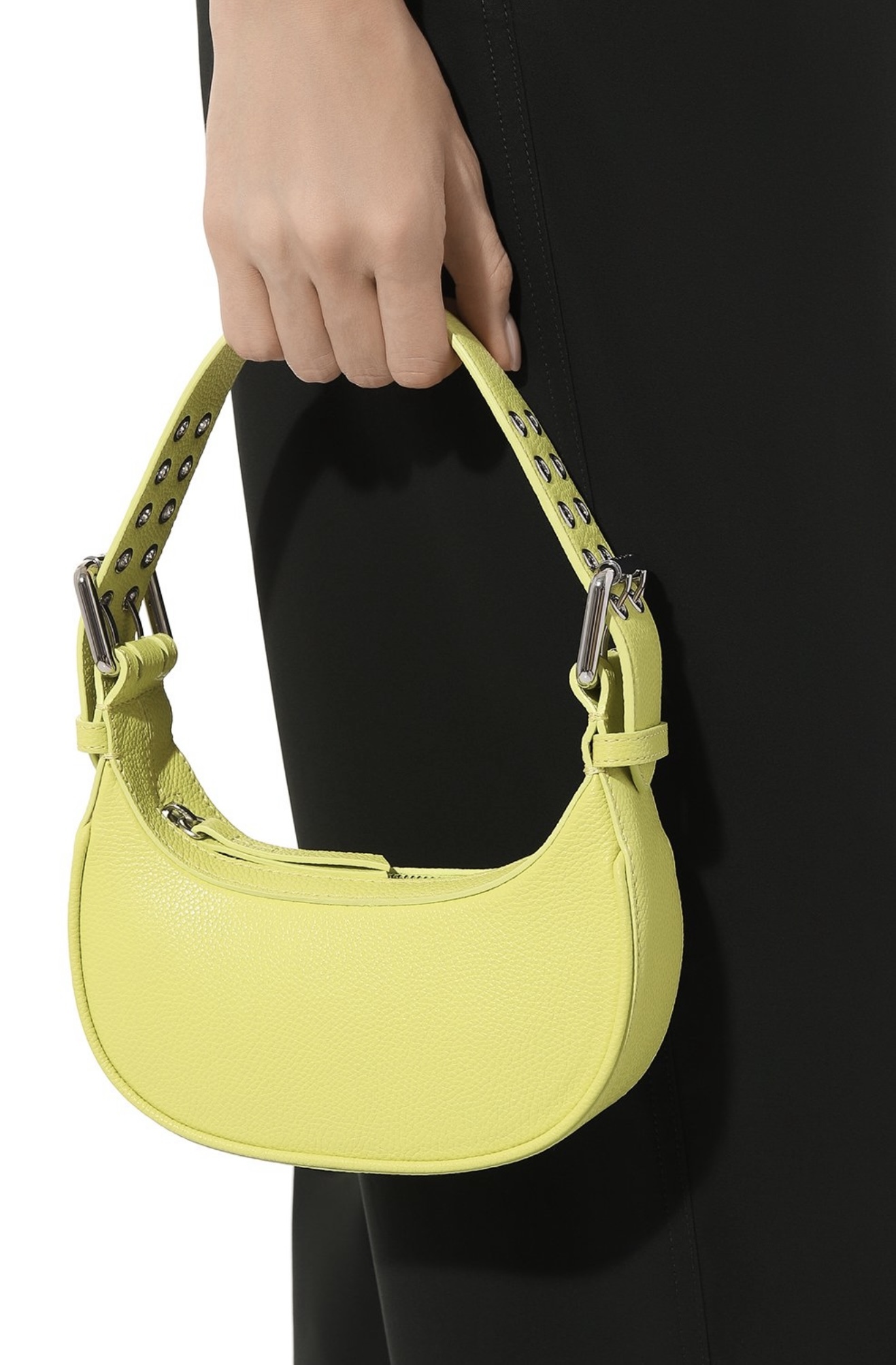 Дизайнеры марки придали небольшой сумке Soho салатового оттенка полукруглую форму. Для пошива модели со съемной широкой ручкой на двойных пряжках использовали плотную матовую кожу с крупнозернистой фактурой, на которой долго не появятся потертости и царапины. Внутрь аксессуара с жестким дном поместятся смартфон, картхолдер и ключи.