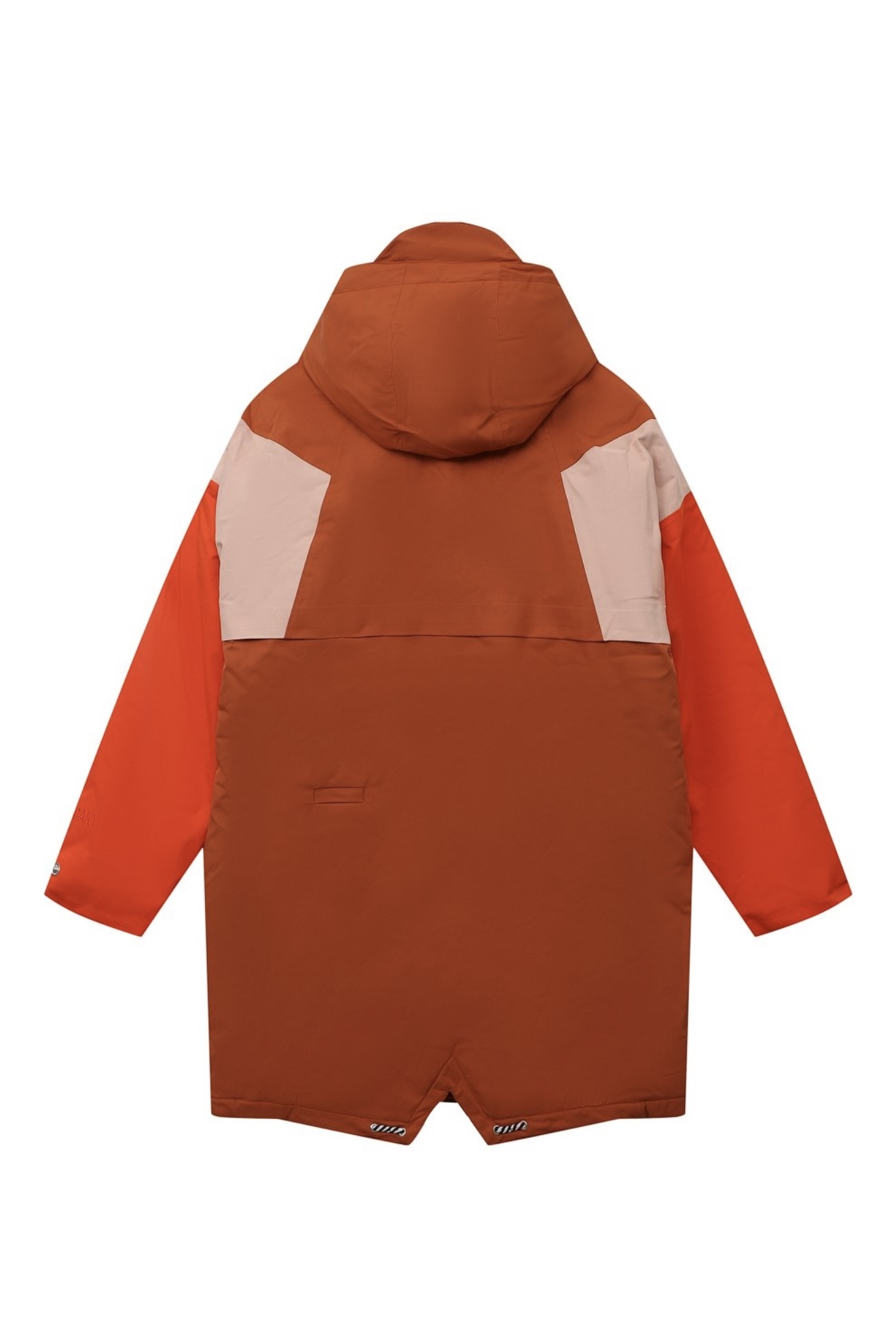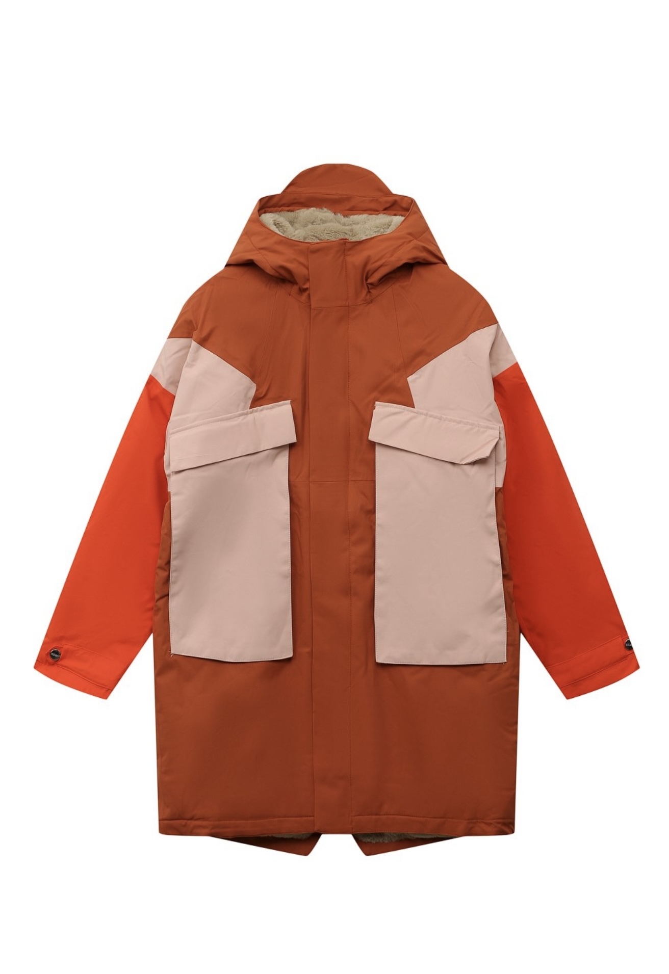 Мастера марки сшили утепленную парку из мягкого прочного полиэстера, волокна которого традиционно обработали водоотталкивающим составом. Для дополнительной защиты от ветра и холода все швы проклеили термолентой, а на объемном капюшоне предусмотрели небольшой козырек.
