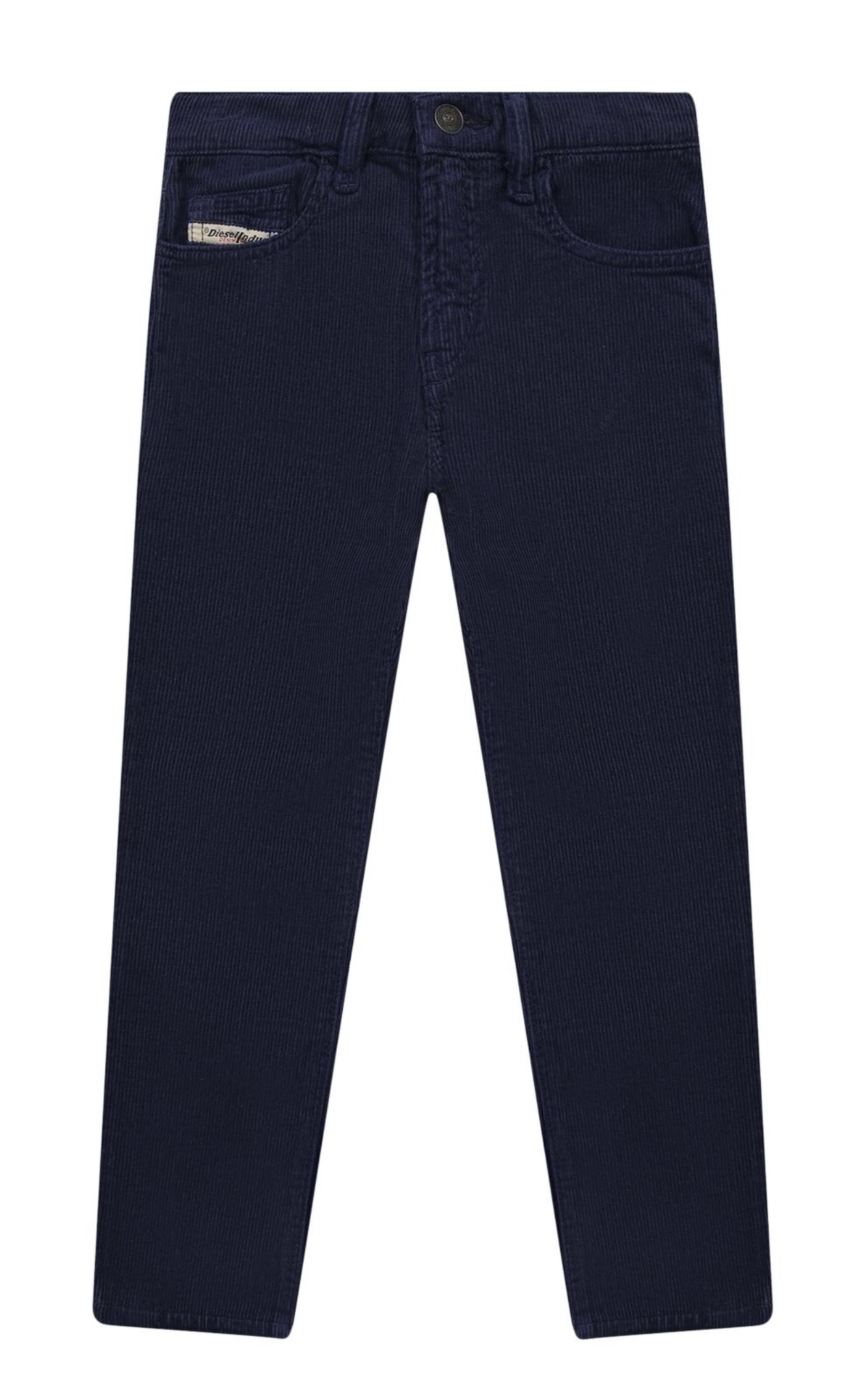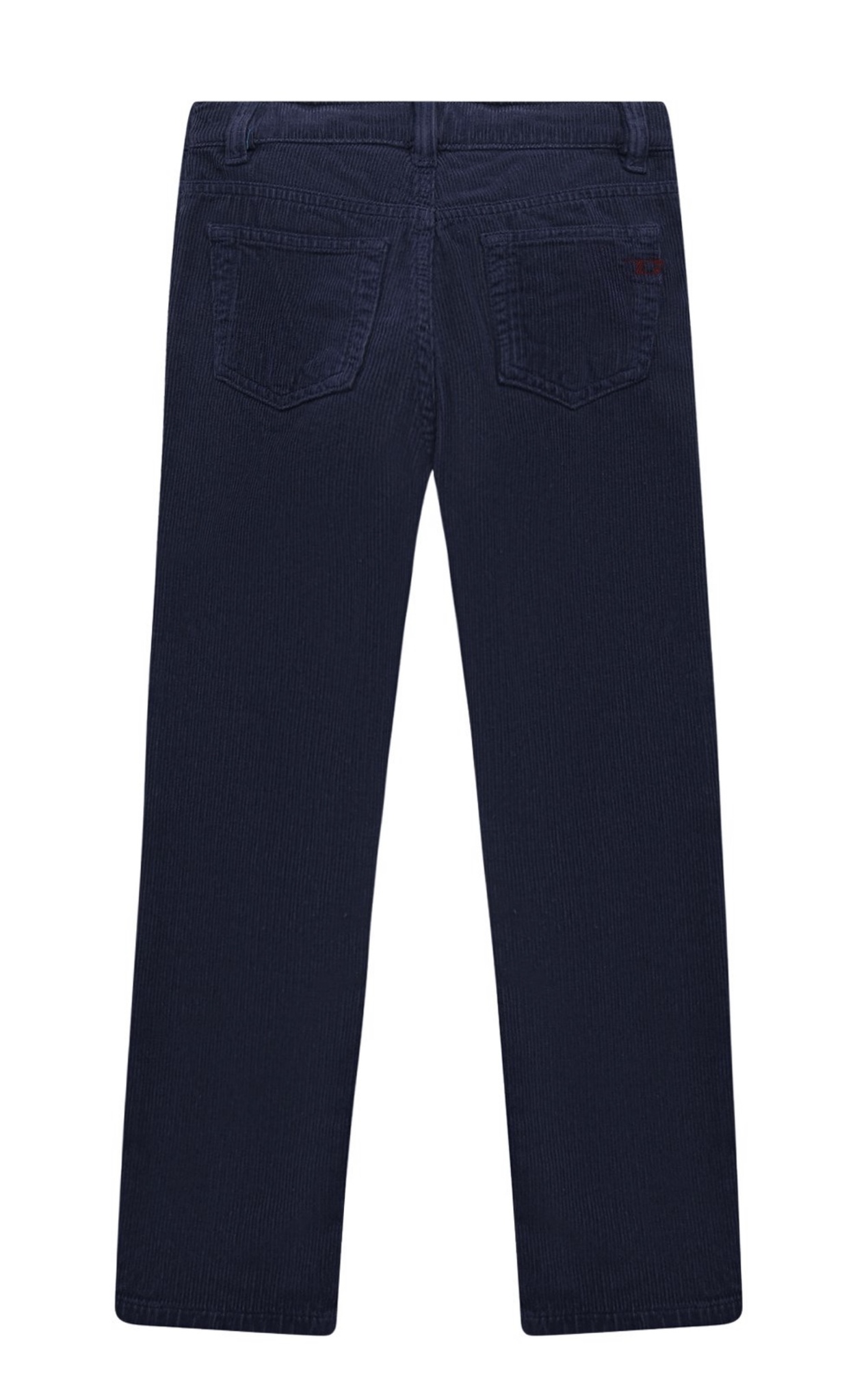 Прямые джинсы с завышенной линией талии сшили из мягкого вельвета. Его бархатистая фактура делает темно-синий оттенок особенно насыщенным и глубоким. В состав ткани добавили немного эластана, поэтому изделие комфортно садится по фигуре.