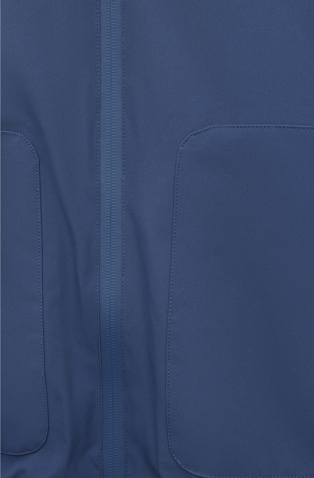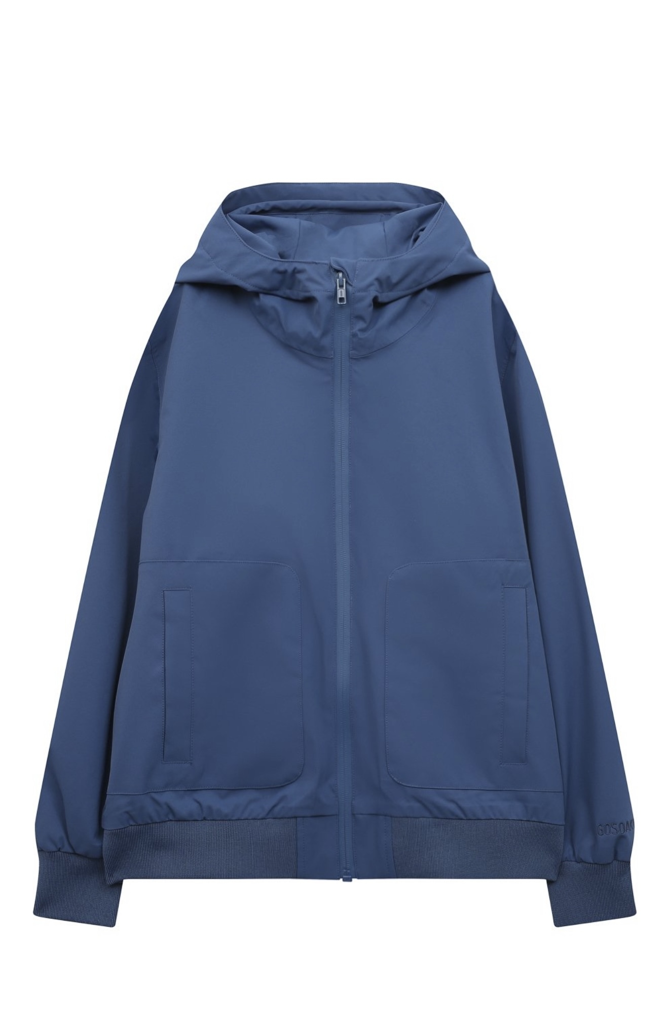 Для пошива синей ветровки, стилизованной под толстовку, мастера марки использовали технологичный микротвил. Тесно переплетенные нити делают ткань непродуваемой, а покрытие Bionic finish не позволяет даже сильному дождю промочить ее. Под прочным материалом скрывается более нежный подклад из махрового хлопка, который не дает мерзнуть в прохладный день.